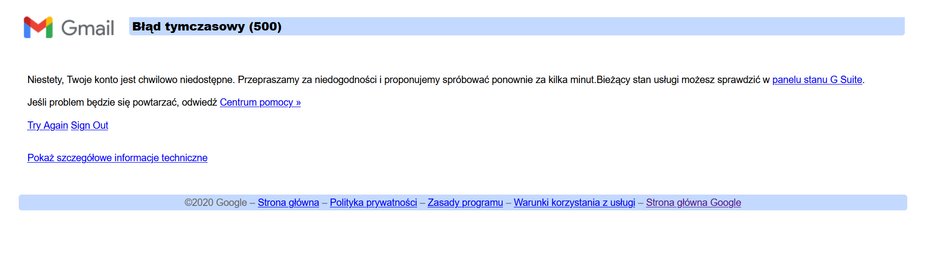 Powazna Awaria Google Youtube I Gmail Problemy Uzytkownikow W Wielu Krajach Polski Obserwator from polskiobserwator.de Google has many special features to help you find exactly what you're looking for. Zobacz najciekawsze publikacje na temat: Serwisy reklamowe adwords oraz adsense, poczta gmail, serwisy google maps. Gmail, youtube i innych serwisów. Za nami wielka awaria google. Najmniejsze problemy sprawia wyszukiwarka google. Youtube, gmail i google play. Nie działają gmail, youtube, mapy, dysk google, google pay itd.
